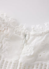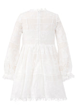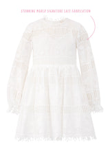 The Natalia Lace Dress is an elegant and sweet ivory mini dress with long sleeves, perfect for flower girls, graduations, or any special event. This dress offers a timeless and sophisticated look.