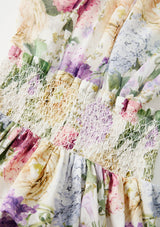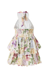 The Seraphina Halter Neck Frill Mini Dress is a sweet and feminine style designed for sunshine-filled days and special celebrations. Featuring soft painterly florals, cascading frill tiers, and a smocked bodice for comfort and ease, this dress is a playful yet polished choice for every occasion.