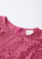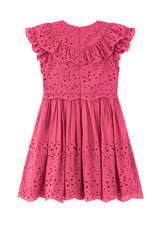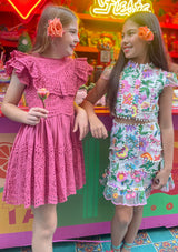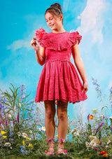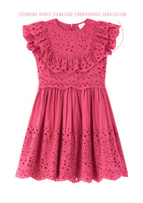 Make a statement with the Naomi Embroidered Mini Dress. Featuring embroidered details and a ruffle neckline, this mini dress is perfect for both playtime and celebrations.