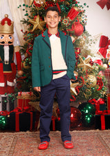 For the dapper young gentlemen, our Holiday Blazer is a perfect choice. With long sleeves and contrast edges, it's a sharp and stylish addition to any festive occasion. Whether it's a holiday party or a family gathering, this blazer ensures your child looks his best.