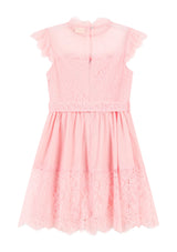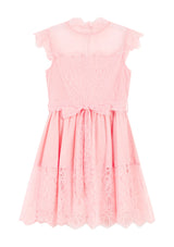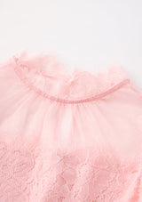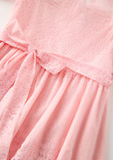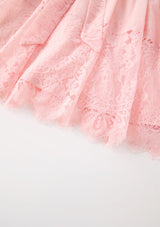 Made for twirling, the Madilynn Lace Mini Dress in peach blends delicate lace and ruffles. A dreamy option for first communion dress girls or any festive occasion.