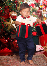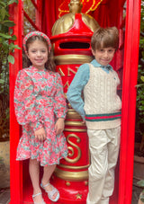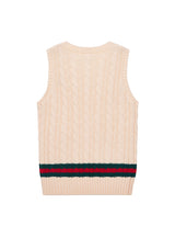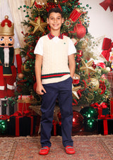 Keep your child warm and stylish with our Holiday Knitted Vest. With its pattern and striped hem, it's a charming addition to any winter outfit. Whether it's layered over a shirt or worn as an extra cozy layer, this vest ensures your child stays comfortable during the holiday season.