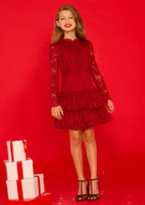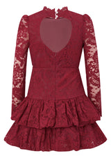 A timeless silhouette reimagined in soft ivory, the Rosella Lace Sleeve Mini Dress captures pure elegance. Crafted in intricate lace with a heart-shaped back cut-out and tiered skirt, it’s a picture-perfect choice for special occasions and holiday celebrations.