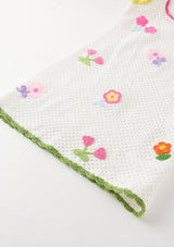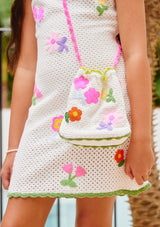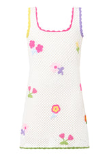 The Daisette Crochet Mini Dress is a whimsical holiday staple, designed for carefree days under the sun. Handcrafted in intricate crochet with multicoloured floral motifs and scalloped trims, this easy silhouette layers beautifully over swimwear for beach-to-bar versatility.