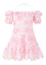 The Hayley Embroidered Mini Dress is a sweet, playful style adorned with vibrant floral embroidery and delicate frill details. Designed with a feminine off-shoulder silhouette and soft tiered skirt, this piece is perfect for parties, celebrations, and sun-filled moments.