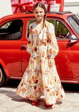 Step into the festive season with grace in our Holiday Sleeve Maxi Dress. Designed with an enchanting floral print, this dress features long sleeves that provide just the right amount of warmth for cooler holiday evenings. Its flowing maxi-length skirt adds an air of elegance, perfect for creating magical memories. Whether it's a festive family gathering or a holiday photoshoot, this dress is a stunning choice for the season.