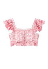Elevate their style with our Kiera Embroidered Top. This embroidered floral crop top with tie-up straps can be worn on its own or paired with the matching Kiera Embroidered Skirt for a chic ensemble.
