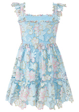 The Lilia Embroidered Mini Dress is a joyful floral style crafted with vibrant embroidery and playful frill tiers. Designed with soft ruffled straps and a twirl-worthy silhouette, this dress is perfect for birthdays, parties, and sunshine-filled days she’ll always remember.