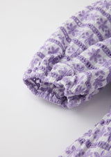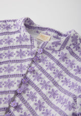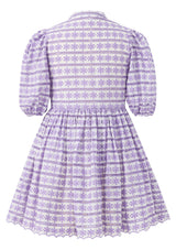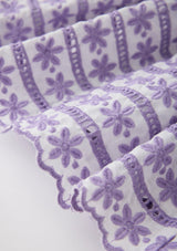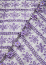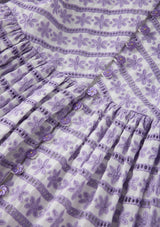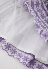 The Odessa Puff Sleeve Mini Dress is a charming silhouette designed with soft lavender embroidery and romantic frill detailing. Featuring voluminous sleeves and a tiered mini skirt, this style blends playful movement with classic Marlo elegance.