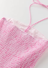 Sweet and effortless, the Elara Mini Dress features a shirred bodice and halter neckline for an easy, flattering fit. Finished with a flouncy ruffle hem, it’s the perfect dress for summer adventures from parties to picnics.