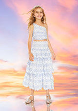 The Nora Embroidered Top is a stylish and comfortable piece that will make her feel extra special. With delicate floral embroidery and a relaxed fit, it’s perfect for pairing with our matching Nora Embroidered Skirt, shorts, or jeans for a casual yet chic look.