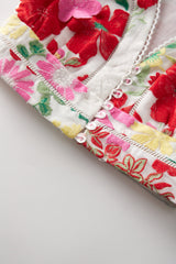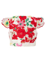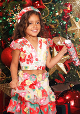 Our Candy Cane Top is a delightful crop top featuring short flutter sleeves and embroidered 3-Dimensional flowers. It can be styled on its own with a white skirt for a fresh and elegant look or paired with the matching Candy Cane Skirt for a coordinated outfit that's brimming with festive charm.